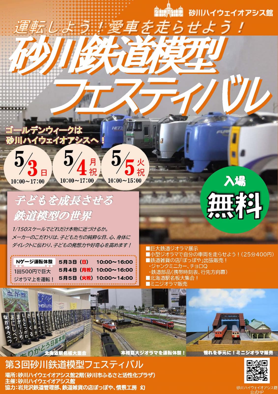 5月3日(日)から砂川ハイウェイオアシス館2階にて「第3回鉄道模型フェスティバル」を開催いたします!