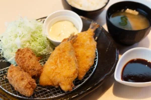 ミルキーで濃厚なカキフライとふわふわのアジフライ